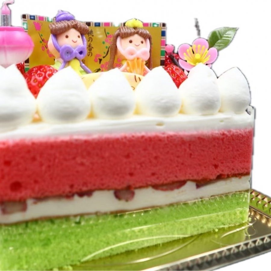 2色のスポンジ地生クリームで菱餅カラーに仕上げました♪