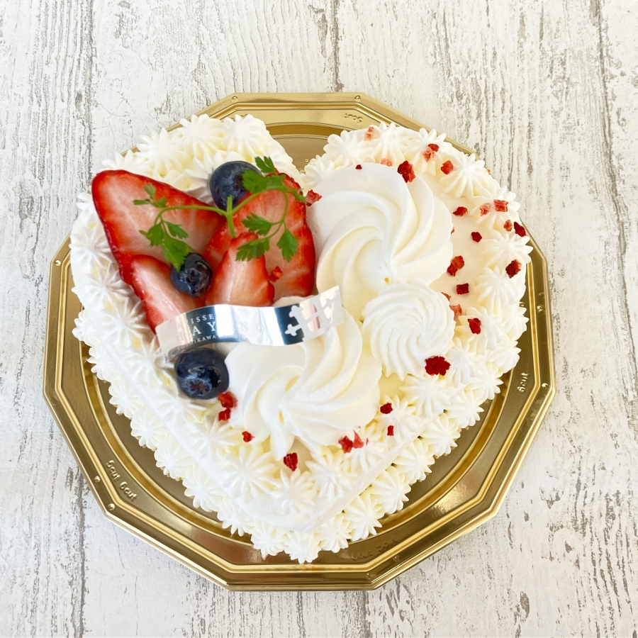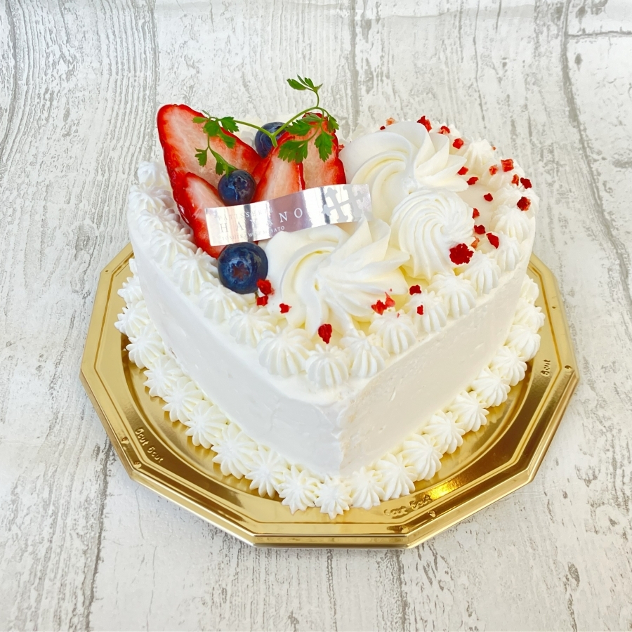 HAYANO1番人気のホールケーキをハートの形にして華やかに飾りました