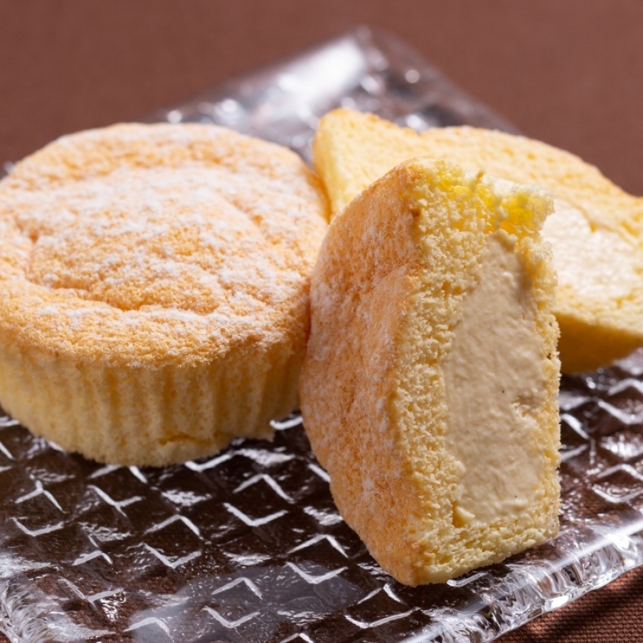 「フワッとした」柔らかい生地の中には、優しい甘さのカスタードのババロアがたっぷり詰まっています。