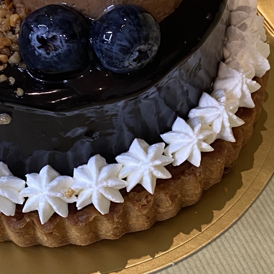 甘さ抑え目ココアパウダーたっぷり使ったココアタルト生地に、滑らか「グラサージュショコラ」を全面にかけたチョコムース!の三段タルト( *´艸`)口溶ける〜チョコレイトムース( *´艸`)濃厚で美味しいです。
