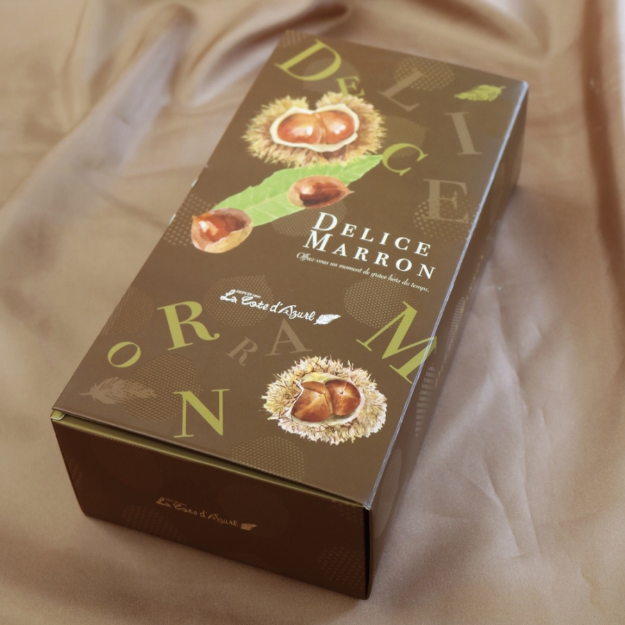 マロンペーストを練り込んだ生地で渋皮栗をまるごと包みしっとりと焼き上げました。シャリ感のあるグラッセを施した、「まるごとマロングラッセ!?」のようなお菓子です。