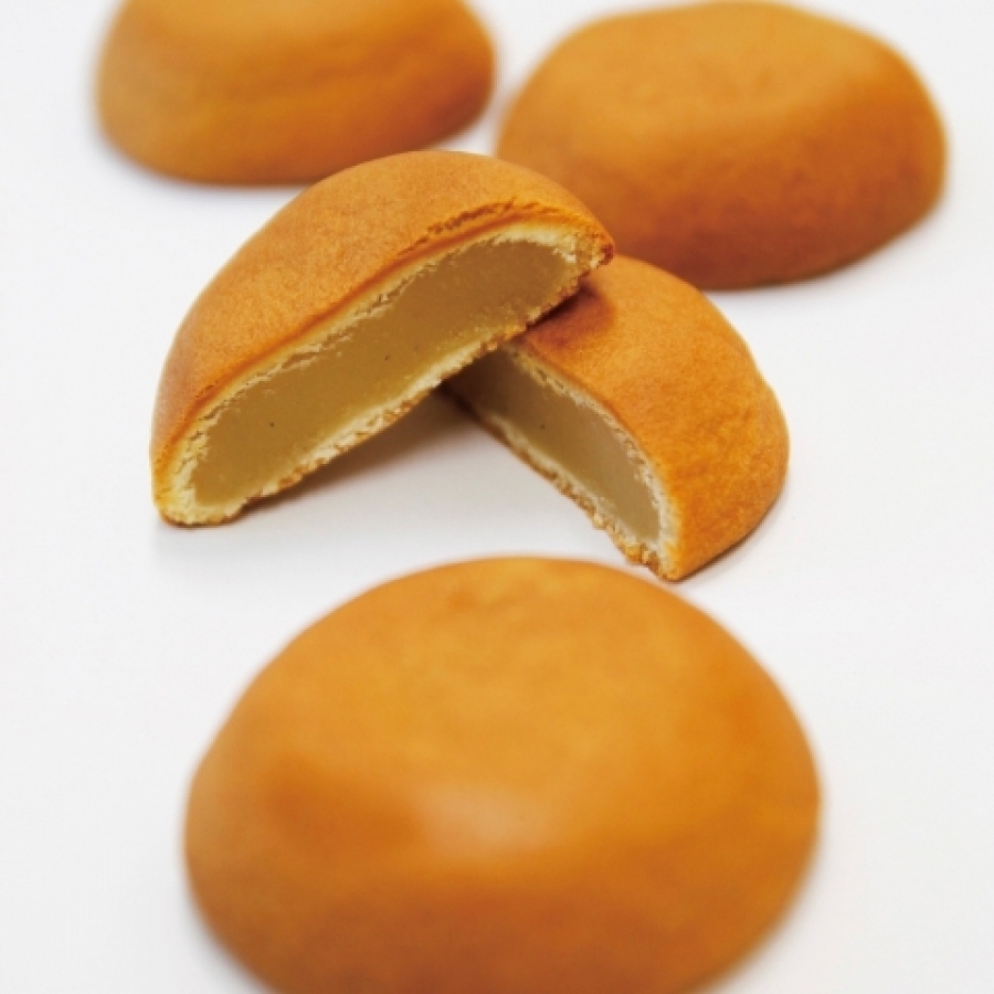 ・ねんねこ:産まれたばかりの赤ちゃんをイメージしてお作りしたとろける特製の練乳餡。 上品な味わいのミルクまんじゅうに仕上げました。