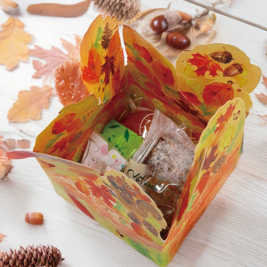 季節感のある秋の雰囲気のお箱に、コート・ダジュールの人気焼菓子をお詰めしました。