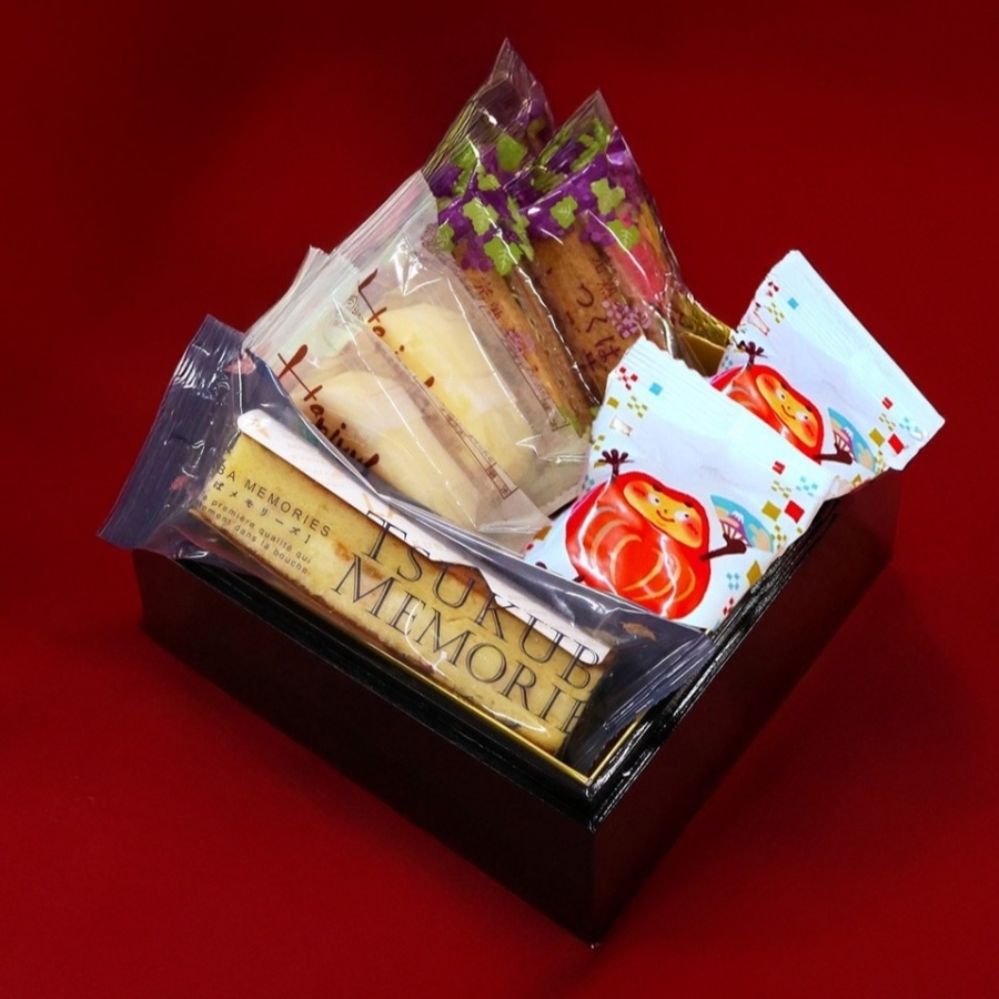 | 2段目 | つくばメモリーズ2個、はんじゅくちーず2個、レーズンサンド2個、だるまちゃんマドレーヌ2個 |