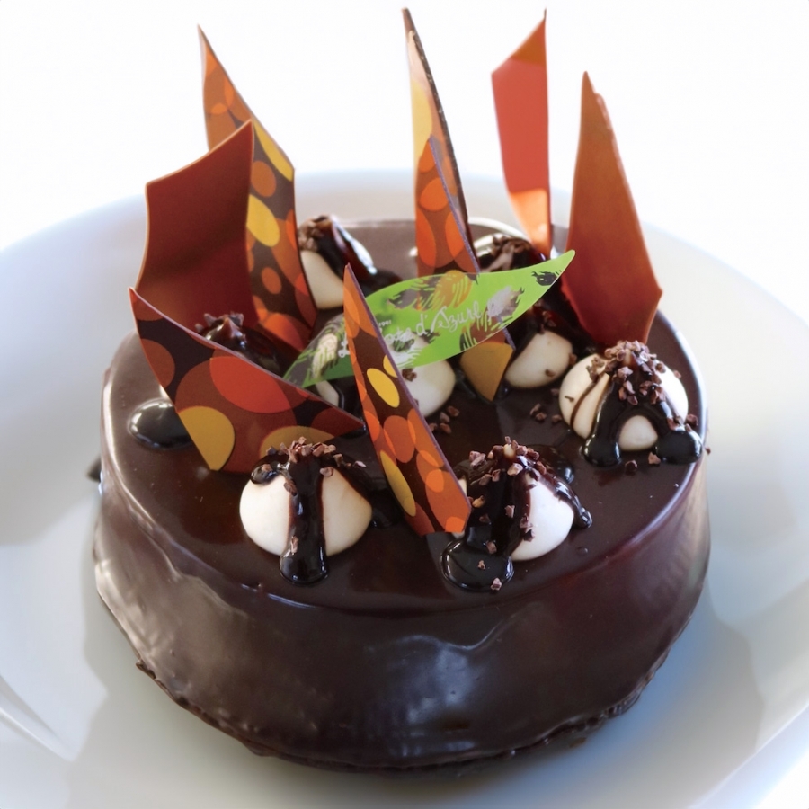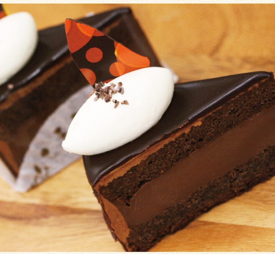 チョコレートを贅沢に使ったしっとり生地にガナッシュクリーム、生クリームをそえました。