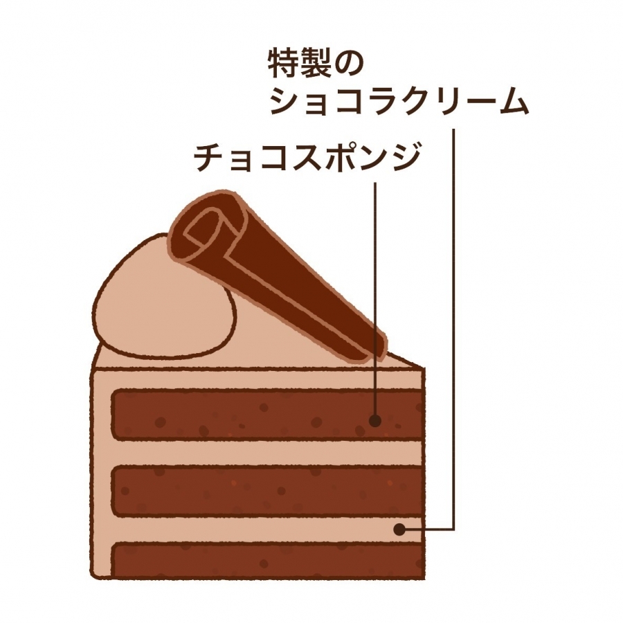 甘さをおさえたフレッシュチョコ生クリームでボリュームたっぷりに仕上げました。