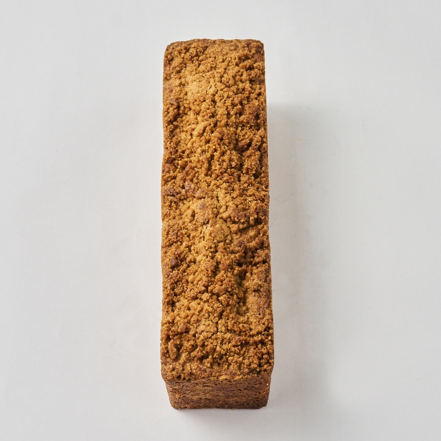 ケークの上にのせている、黒糖風味のシュトロイゼルが食感のアクセントです。