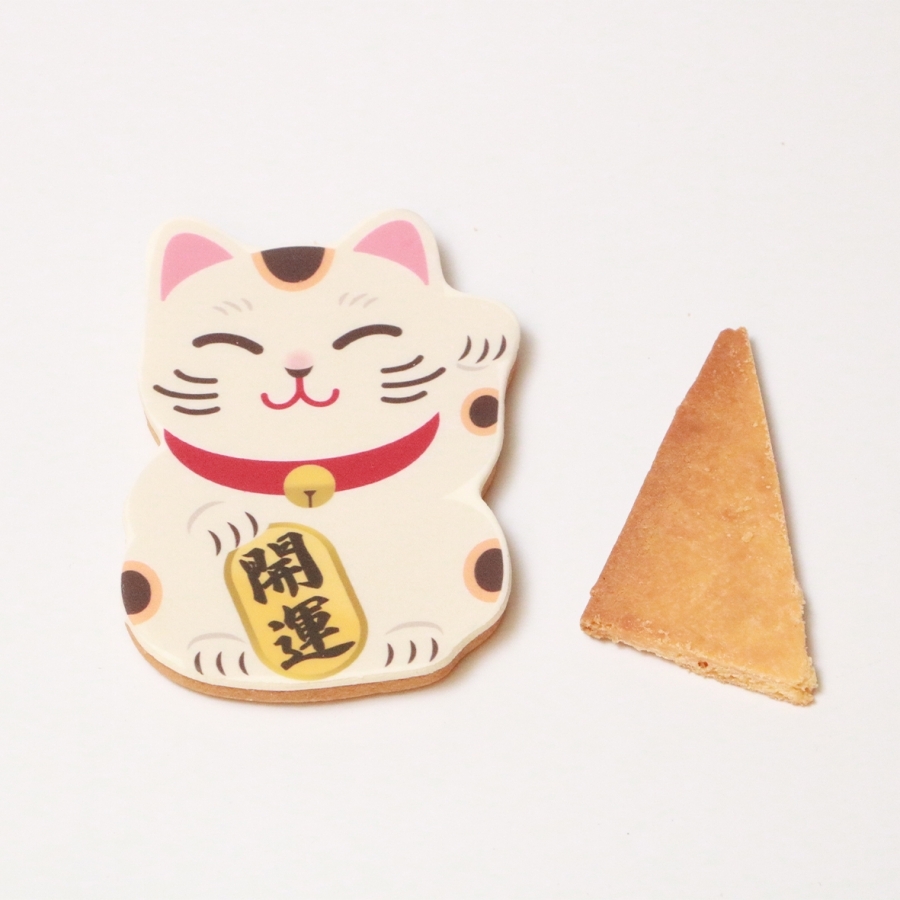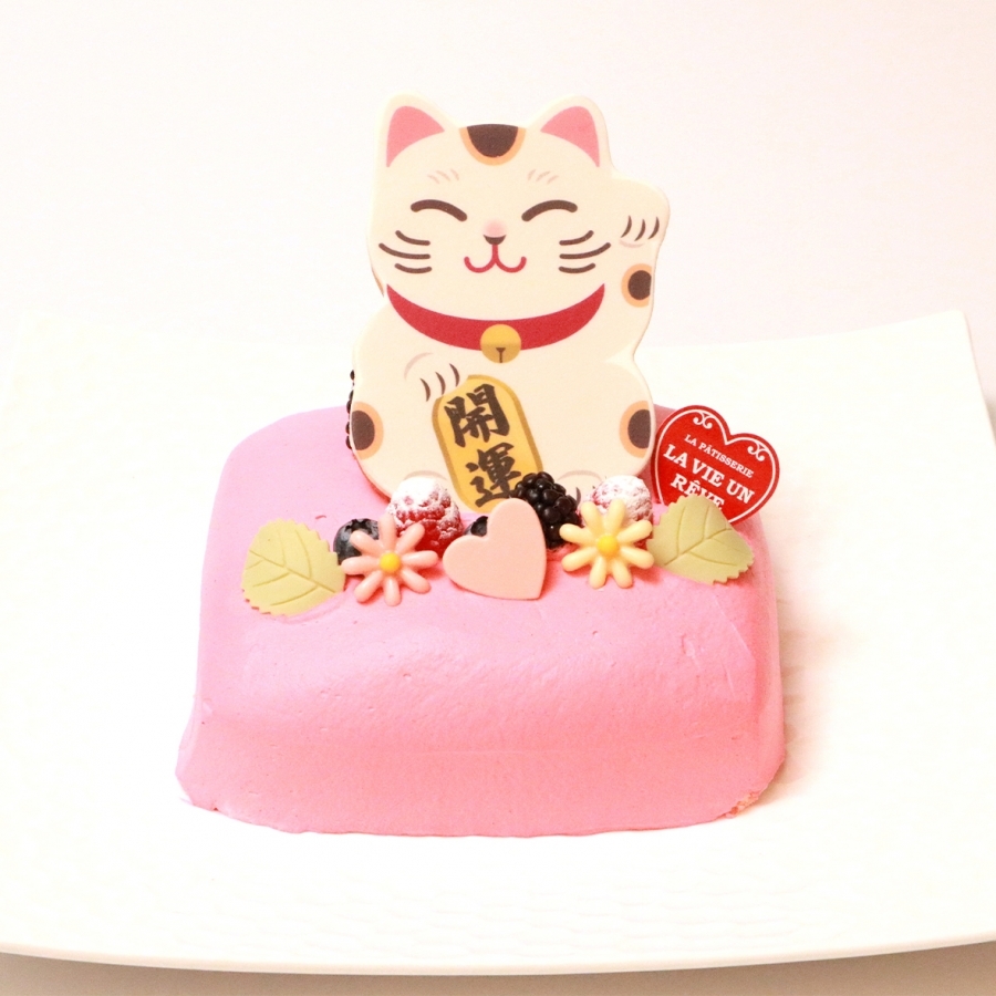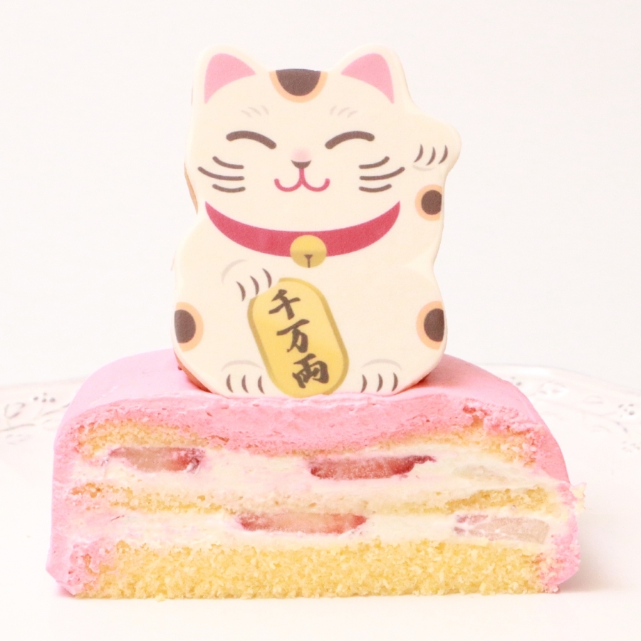 苺のショートケーキに招き猫のプリントクッキーをのせました!