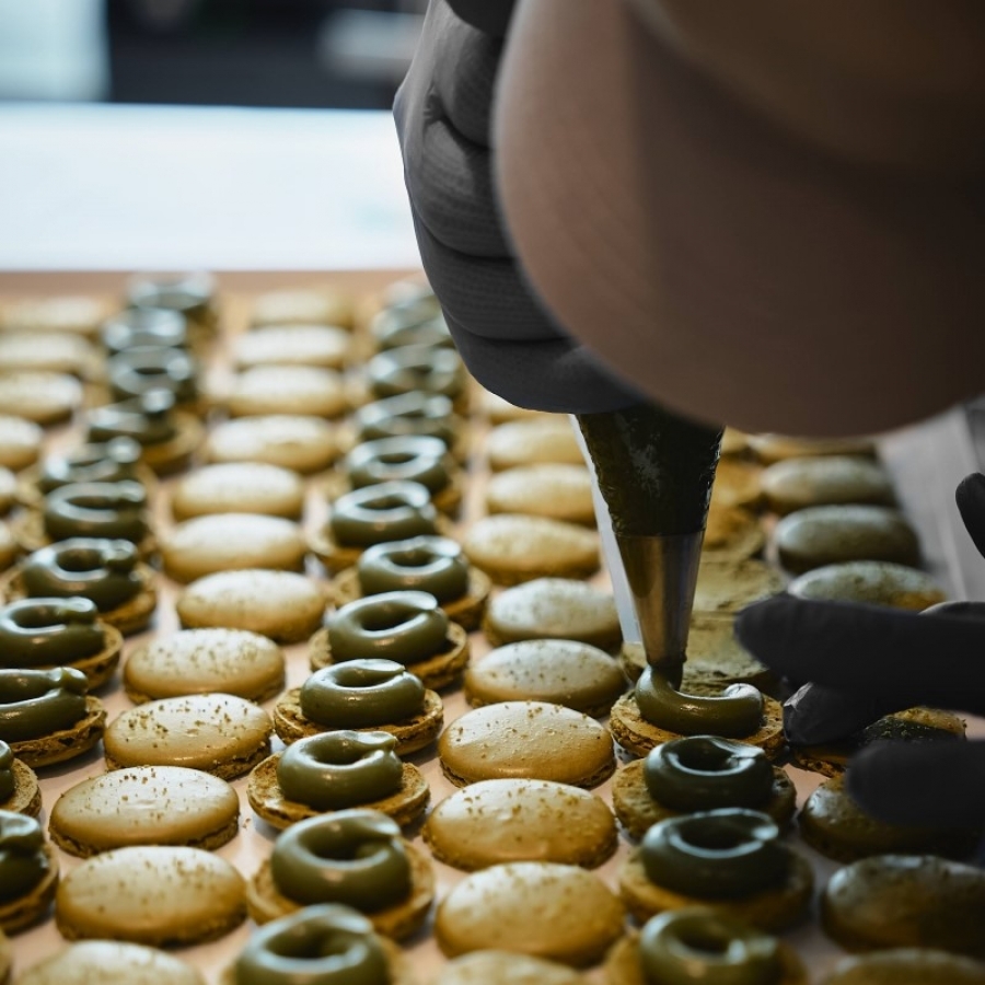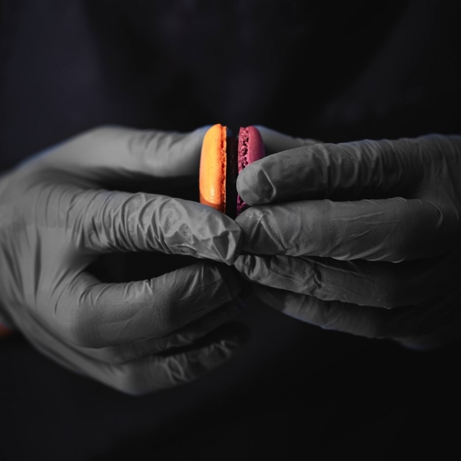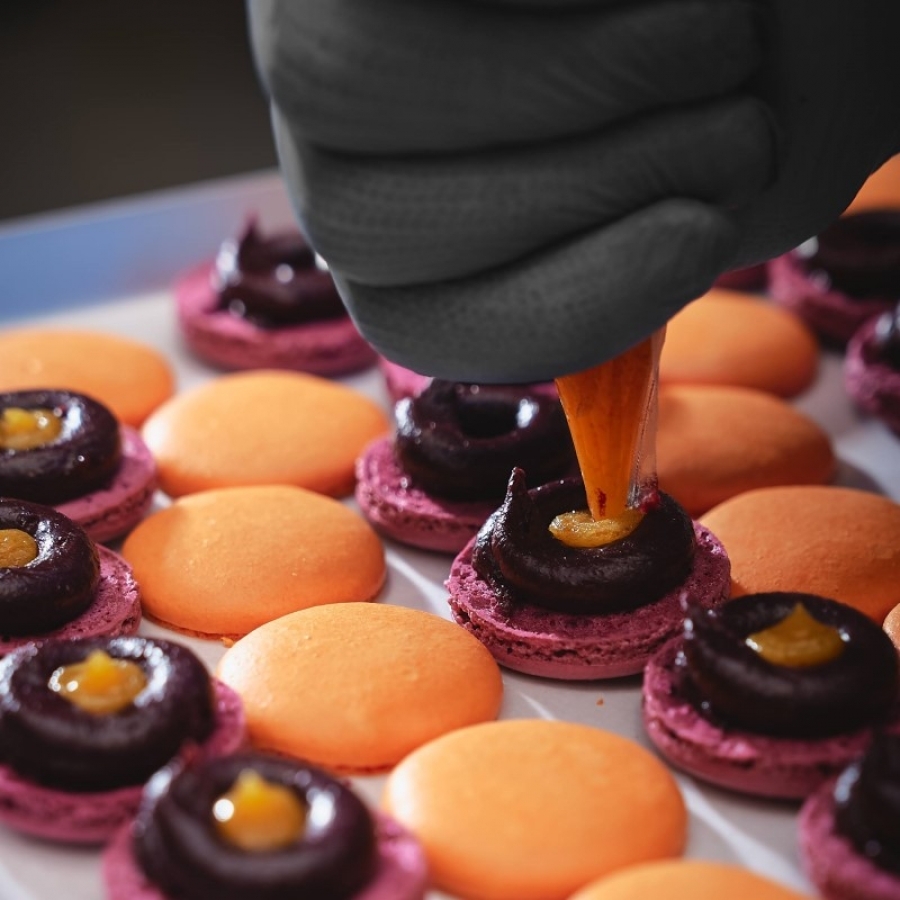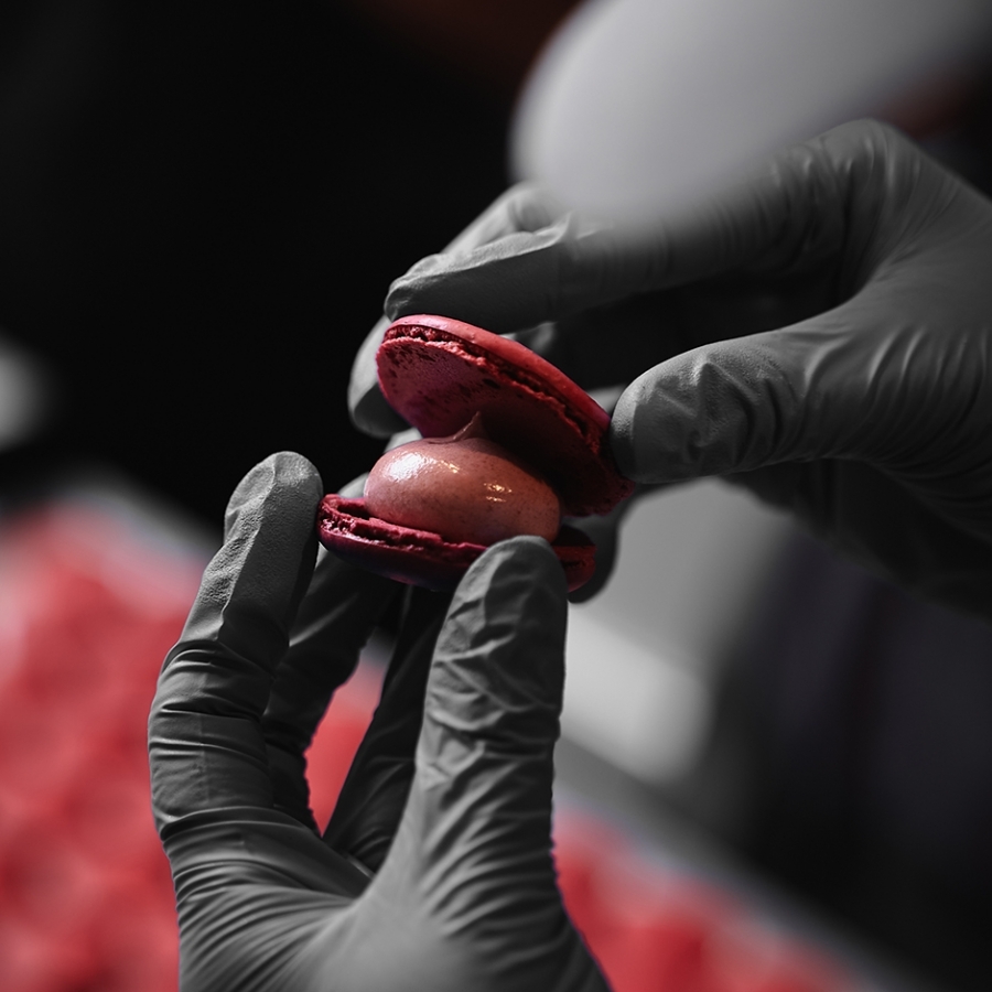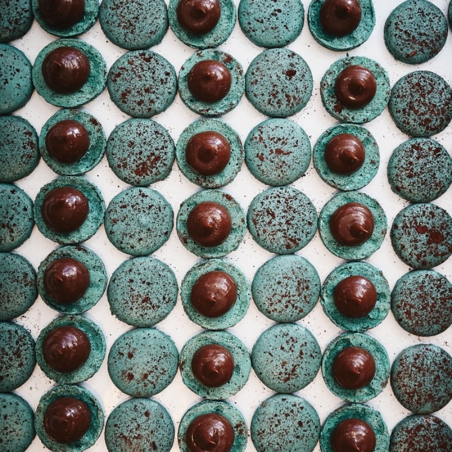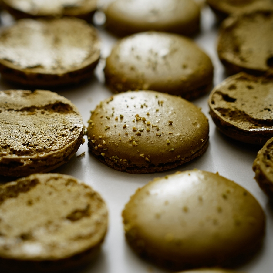 ガナッシュをベースにコンフィチュールやハーブを合わせたクリームをサンドした、ショコラトリーならではのマカロン。