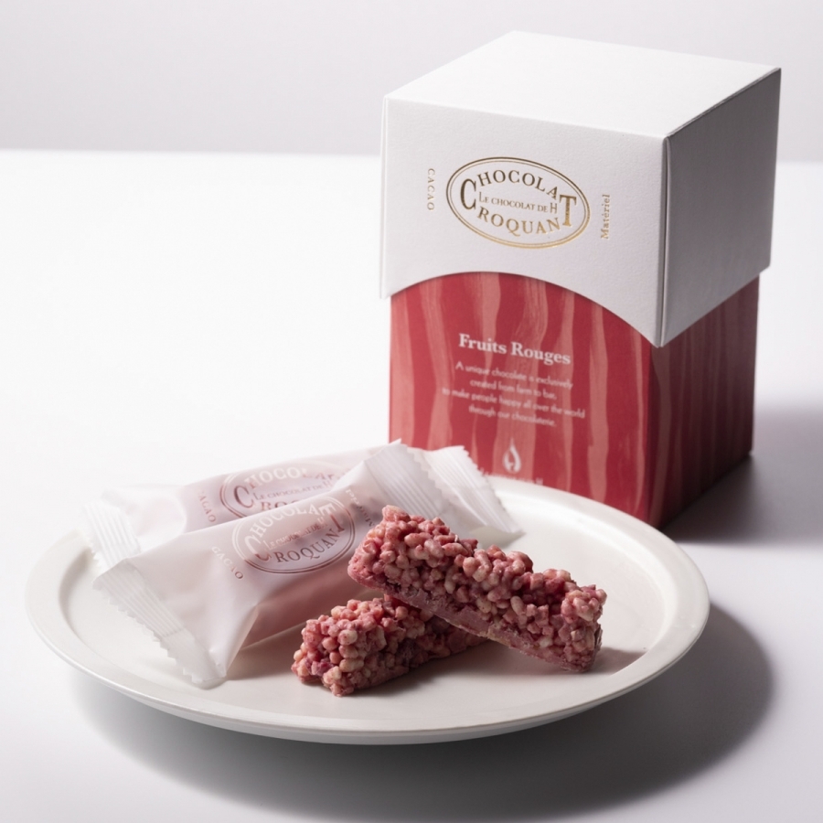サクサクのシュトロイゼルやお米のパフ、ドライフルーツ、ナッツを合わせた食感を楽しめるショコラ。5種のフレーバーごとの箱入りでプチギフトやティータイム、ワインのお供にさまざまなシーンでお楽しみいただけます。