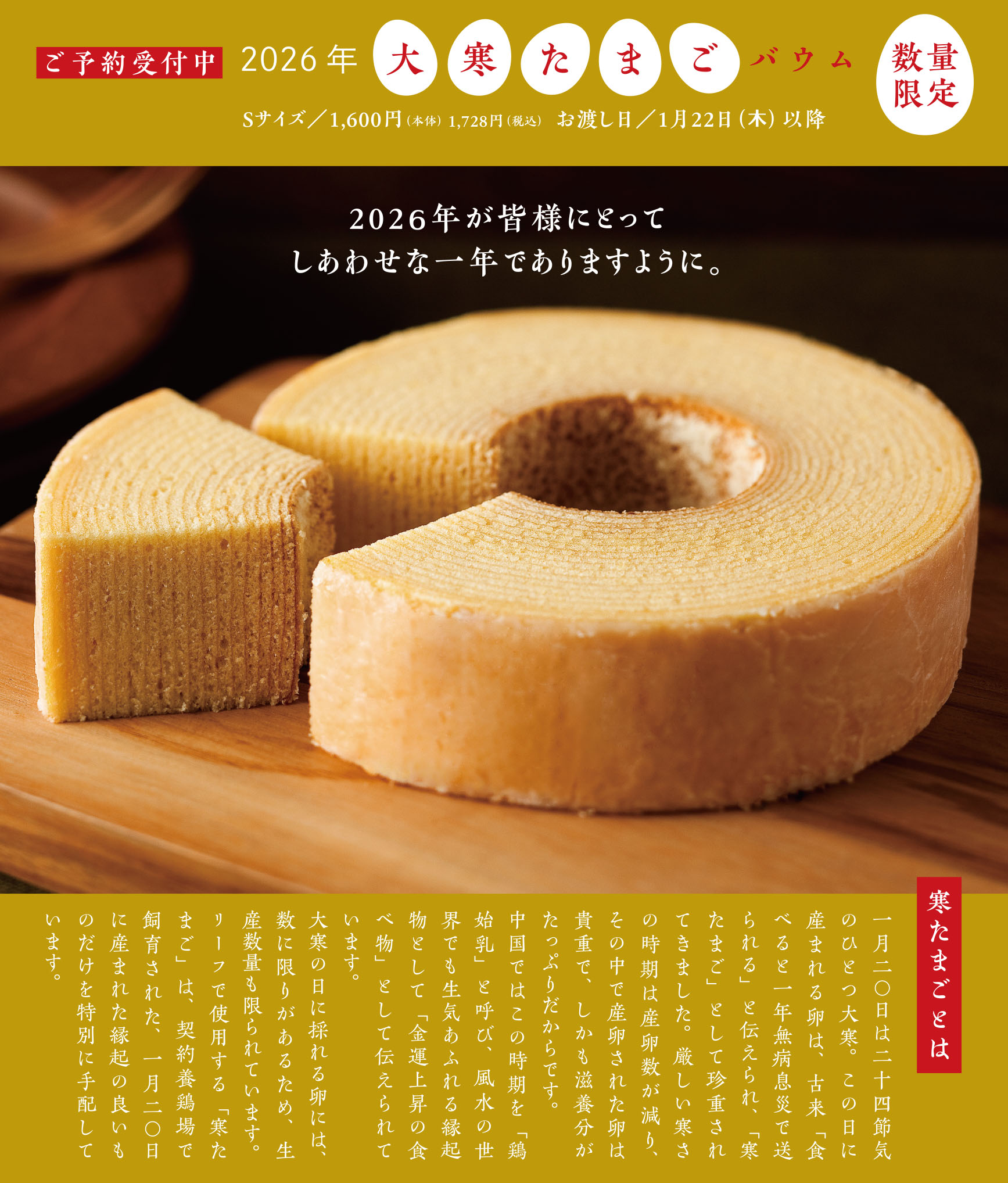 大寒たまごバウムはご家族で切り分けて味わう「家族で囲む福」
