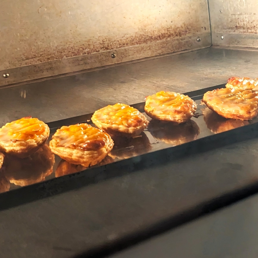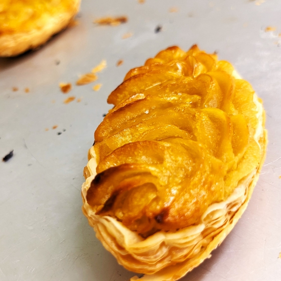 26℃以上の室温では冷蔵庫に保管いただき、お召し上がりの際に、オーブントースターで4分間ほど温めていただきますと、パイはサクサクに、芋餡はこっぼこぼな美味しさに蘇ります。