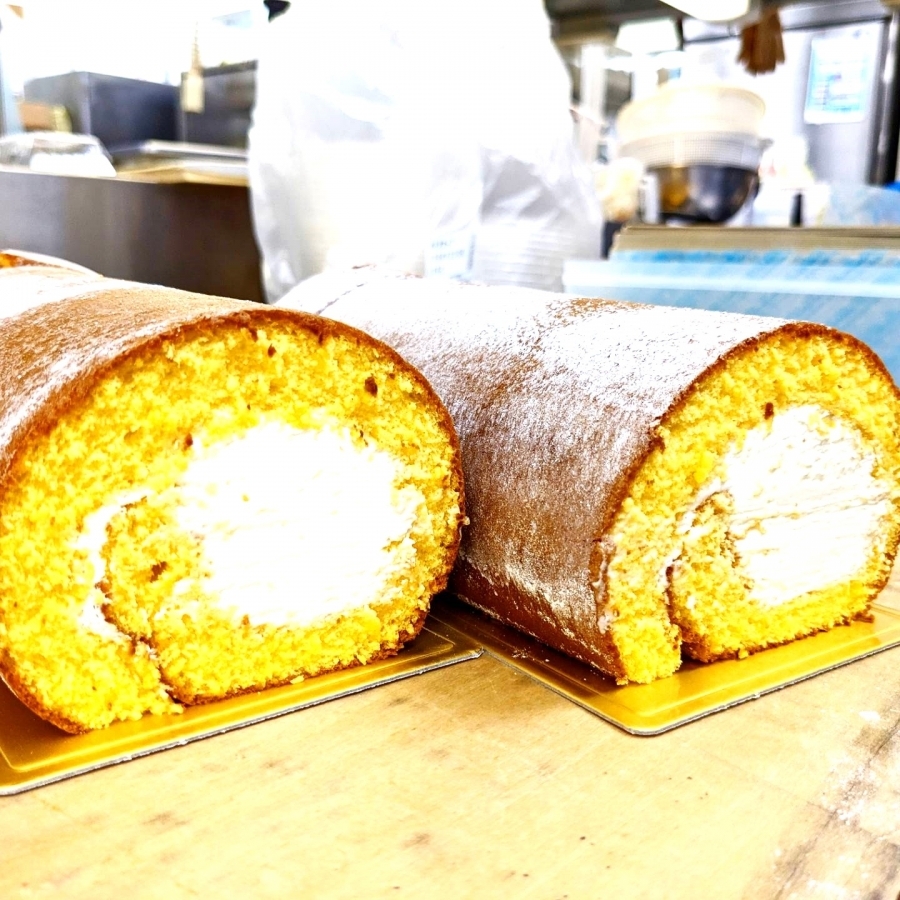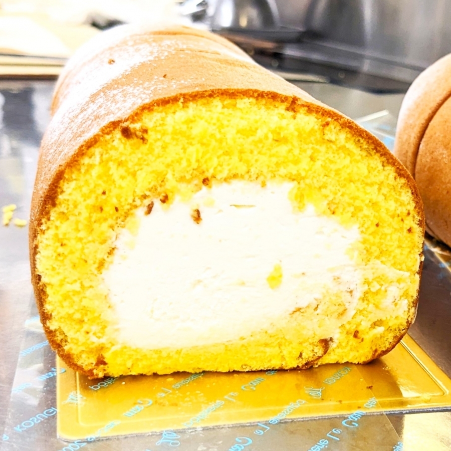シートスポンジで生クリームを巻いたシンプルなロールケーキです。
