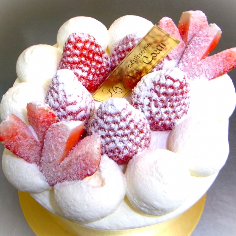 「こんなに大きくて食べれないと思ったのに、パクパク食べ進んでしまった!」と驚いてほしい。ふわふわ感としっとり感、ほどけるようなくちどけ、豊かな乳風味と苺の甘酸っぱさ・・・・ル・クールのデコレーションケーキには幸せな美味しさが溢れています。