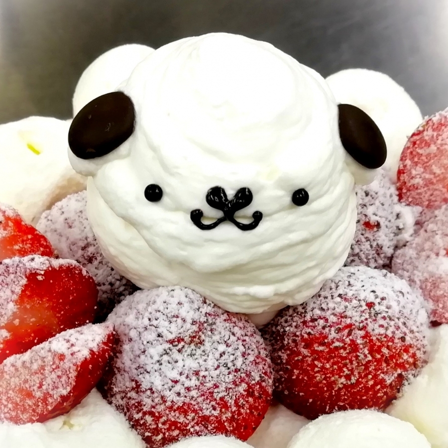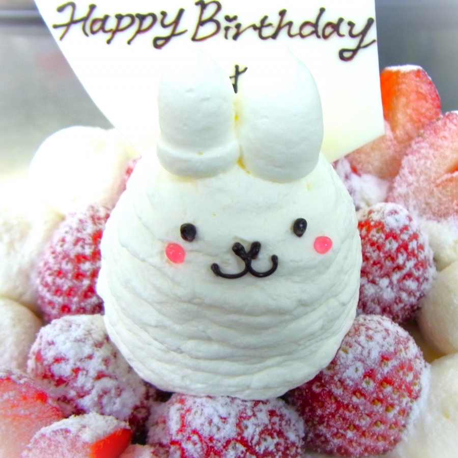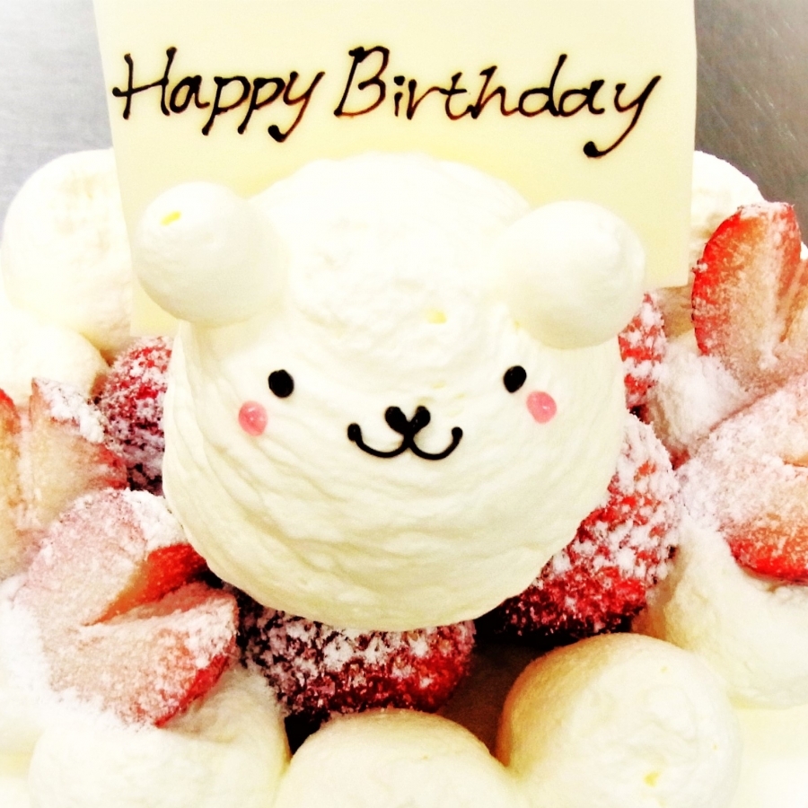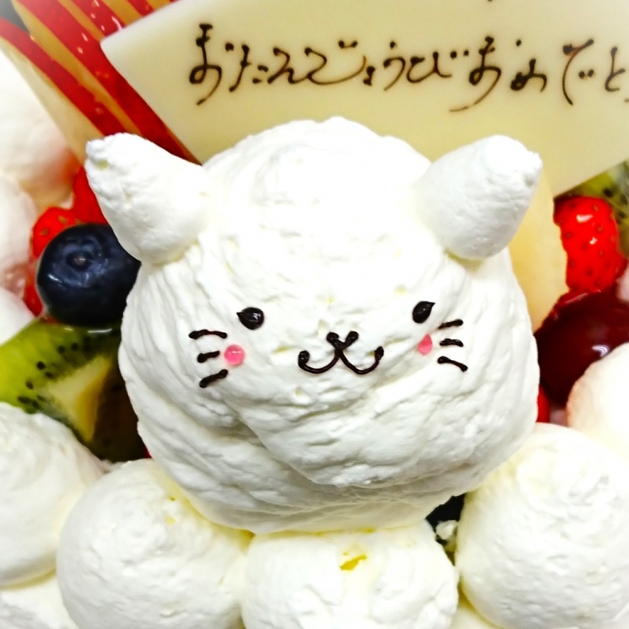 生クリームを丸く絞って、小さな耳を作り、チョコペンで目や鼻、口を描いてお作りする小さな動物さんです。デコレーションケーキの上にのみ、お作りすることが出来るオプションですので、普段はショーケースにお目見えすることのない、ご注文くださった方にのみお作りする動物さんは、デコレーションケーキをご利用の方に、大人気です。