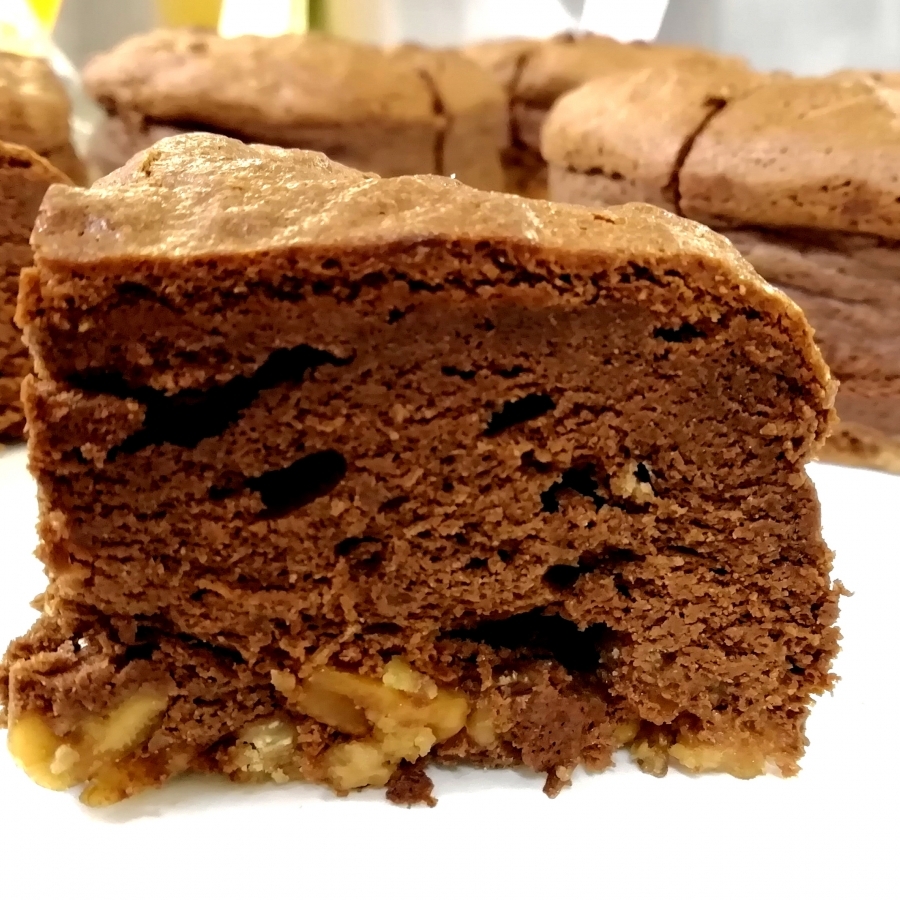 「濃厚でありながら、驚くほど軽くて口どけがよい」チョコレレートケーキを作るために、カカオ61%のクーベルチュールチョコレートとバターのみで作る極めて濃厚なベースに、ふわふわに泡立てた軽いメレンゲを加えて、ふかっと焼き上げます。チョコレートの油分やカカオ分に繊細なメレンゲが負けないよう、二つの素材が手をつなぎあうように素早く、そして、優しく織り合わせるここまでの全工程に、職人の手合わせと見極めが行き届いた気の抜けない作業で仕上げていきます。