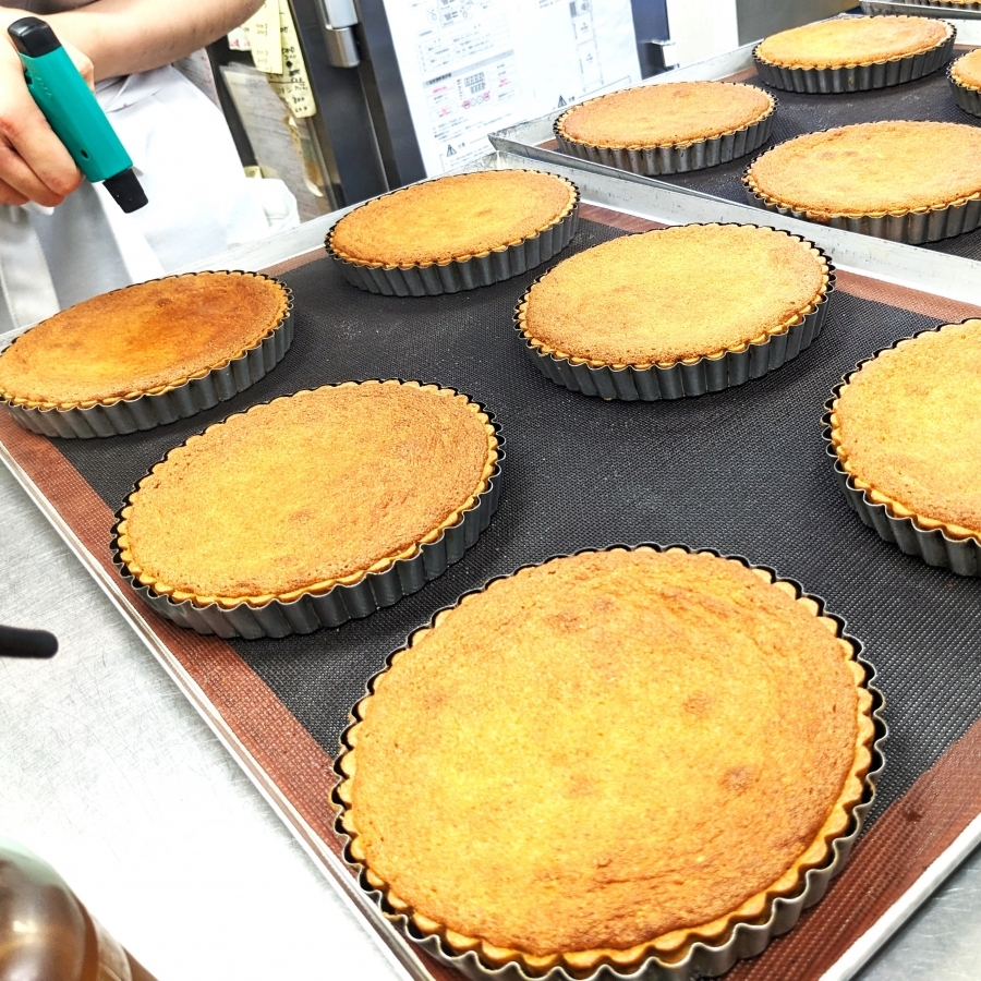 せっかくの乳風味豊かなバター香を損なうことなく焼き上げることに腐心して、タルト生地の扱いは専任のパティシエが行い、決して途中でバターがダレないよう、成形します。