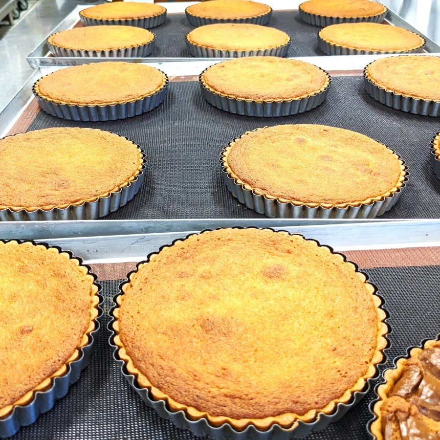 サクッと歯触りのよりサブレ生地の器に、アーモンドクリームを詰めた形状です。