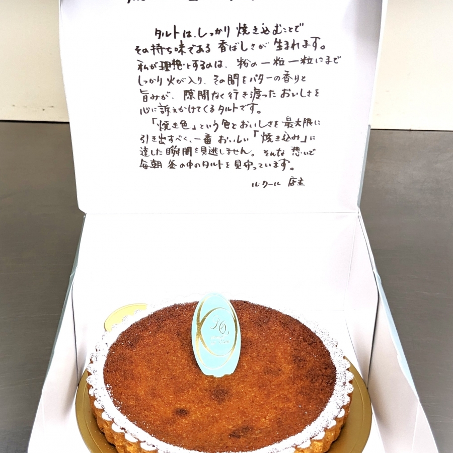中に詰めるアーモンドクリームも、タルトの美味しさを決定付ける大切なパートとして、素材選びと製法を大事にしてきました。アーモンドの女王といわれるスペイン産マルコナ種と、北海道産フレッシュバターをふんだんに使うことで、火入れを行うと何とも言えない芳しさで鼻腔が充満します。