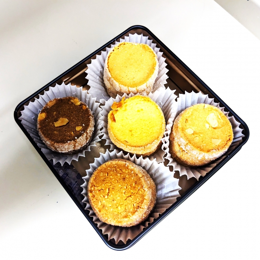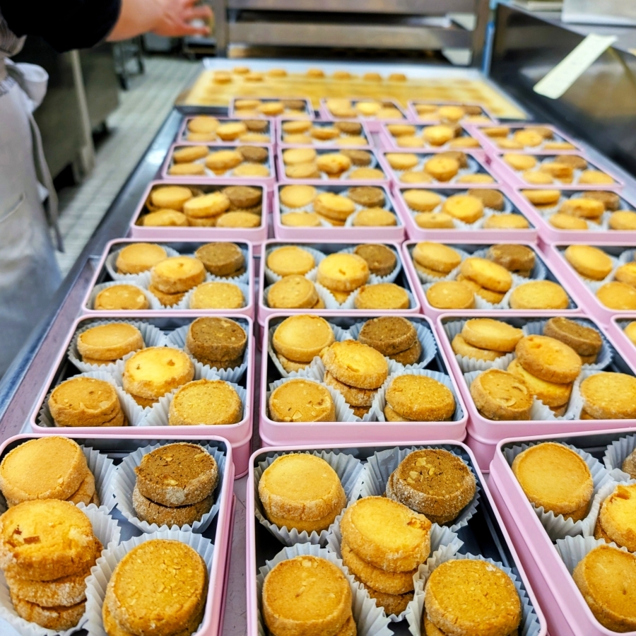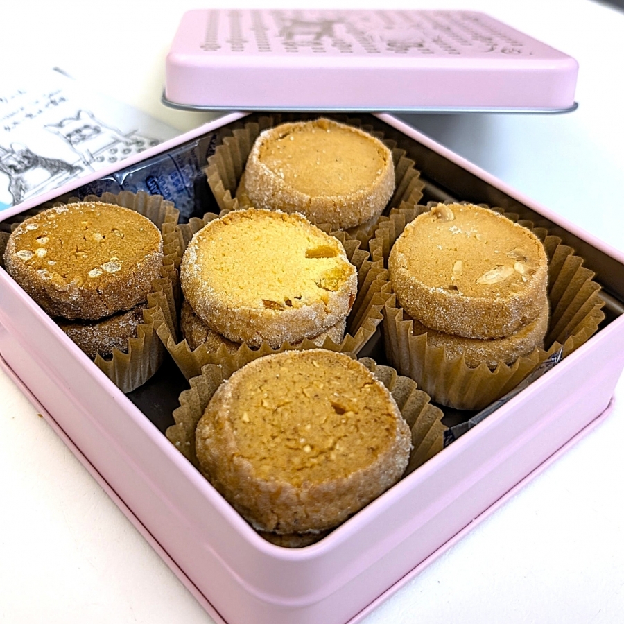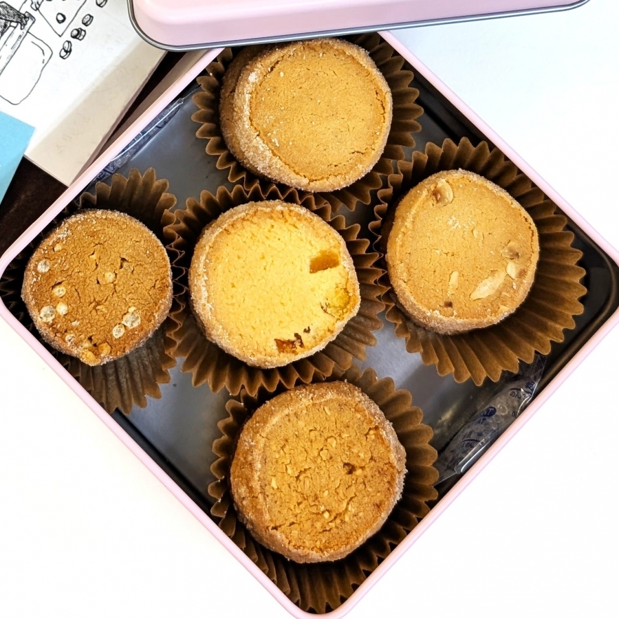 発酵バターときな粉。練り合わせた生地が焼き上がると、何とも言えない芳ばしさが立ち上り充満します。芯までしっかり火を通して芳ばしさを十分に引き出した和素材の美味しさが光るクッキーです。中の米パフがいいアクセントに。
