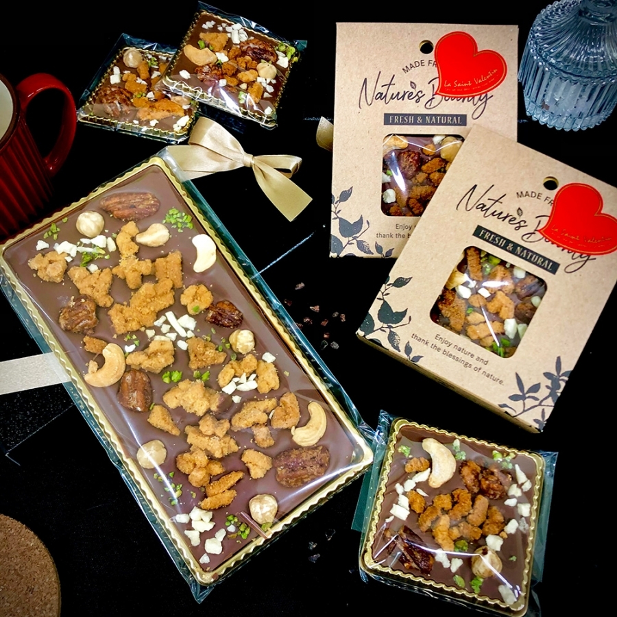 当店オリジナルチョコレートの板チョコに味、食感のアクセントをプラス。