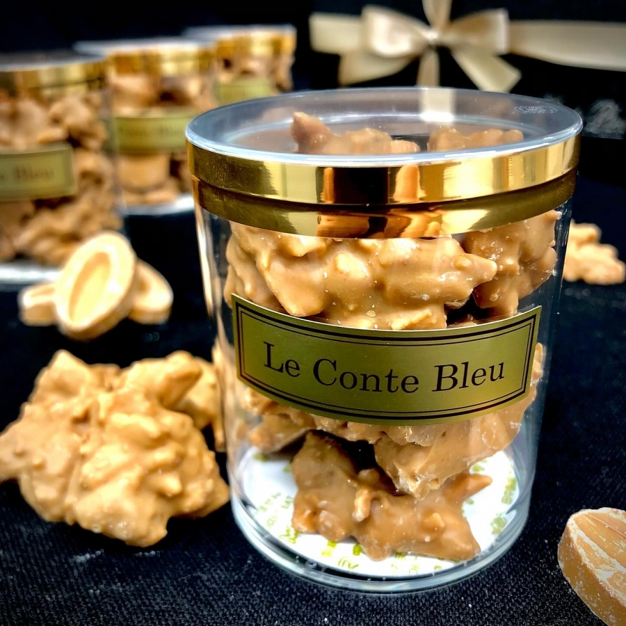 メープルシロップを絡めて焼いたアーモンドに、チョコレートとアクセントをプラスしました。