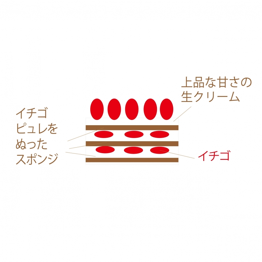 軽やかさの中にもコクのある、上品な甘さの生クリーム、薄くスライスした苺、イチゴピュレをぬった3重層のスポンジ…ラピュタオープン以来、お客様から人気ナンバー1のホールケーキです