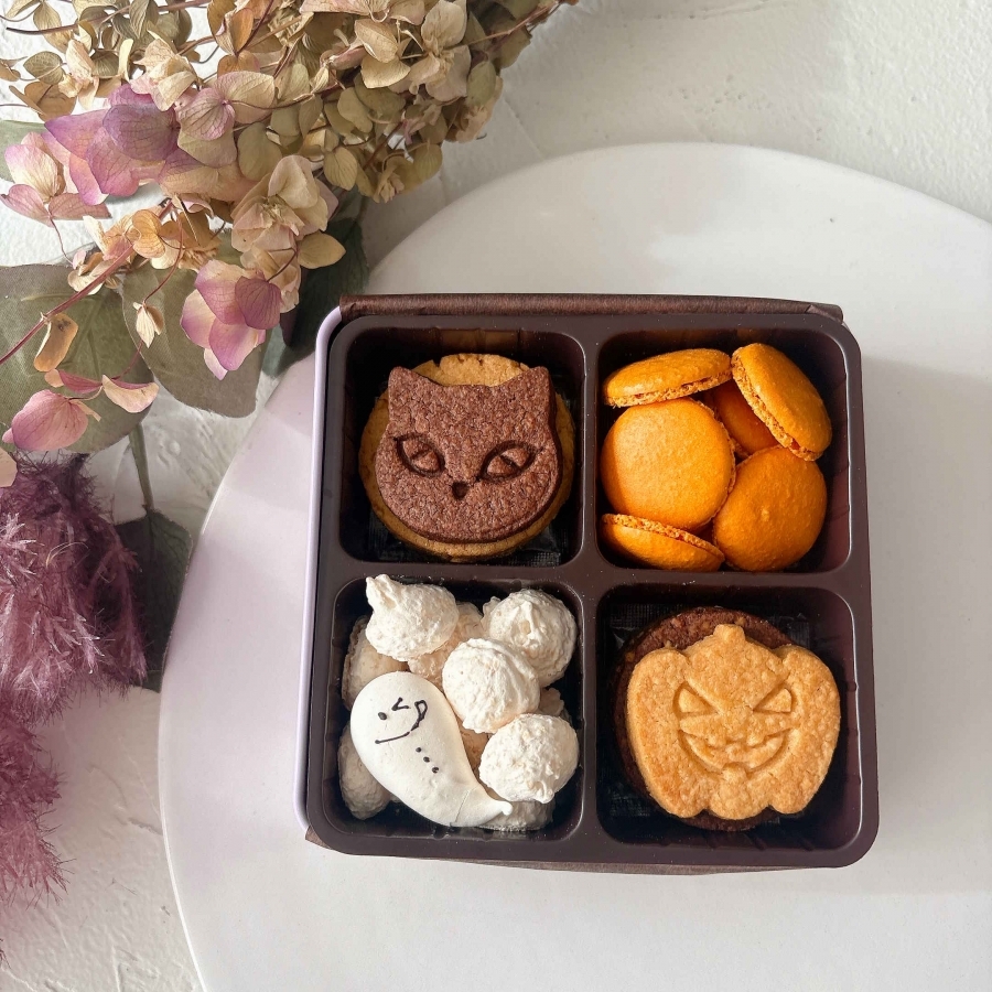 ハロウインらしい4種類のお菓子をお詰めいたしました。