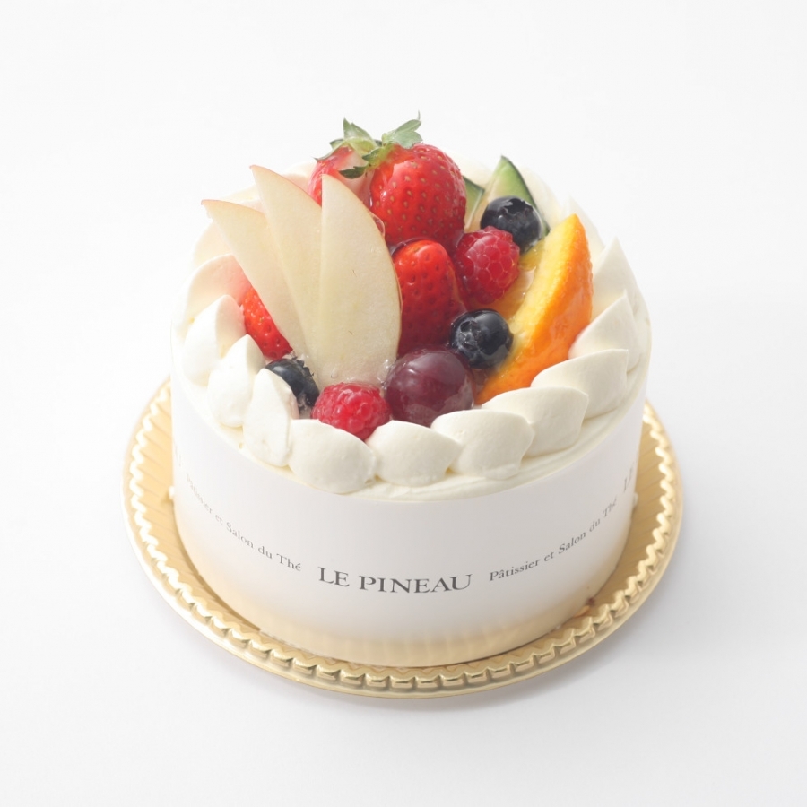 上品で甘さ控えめな生クリームは、ふわふわスポンジ、いちご、オレンジ、洋梨のフルーツとの相性ぴったり。定番のデコレーションケーキです。