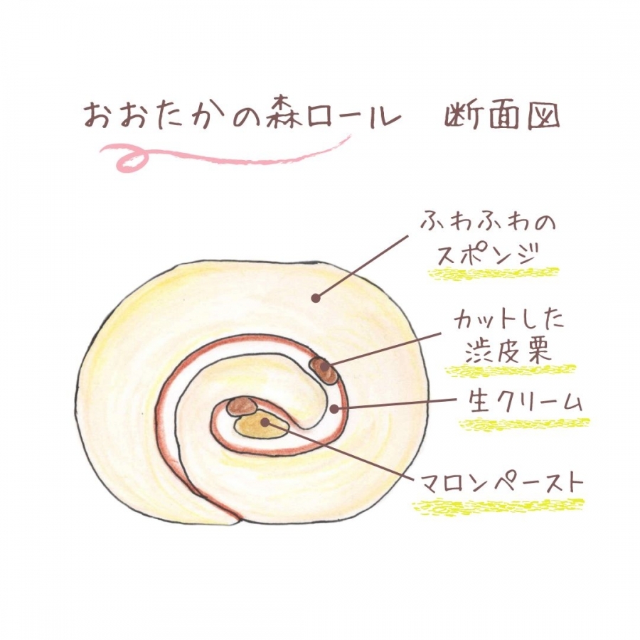 卵をたっぷりと使用したふわふわの生地で生クリームと栗を巻いたロールケーキです。