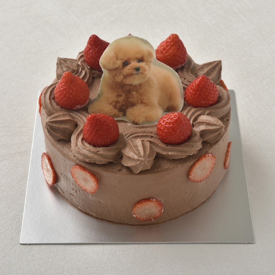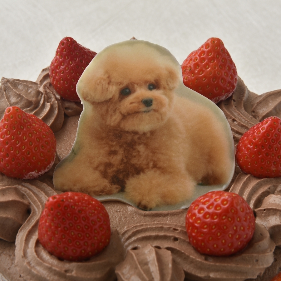 お持ちの写真データをお送り頂き、ホワイトチョコプレートにプリントして飾るデコレーションケーキです。