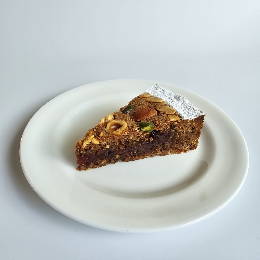 粗挽きナッツとチョコレートがたっぷりの生地に