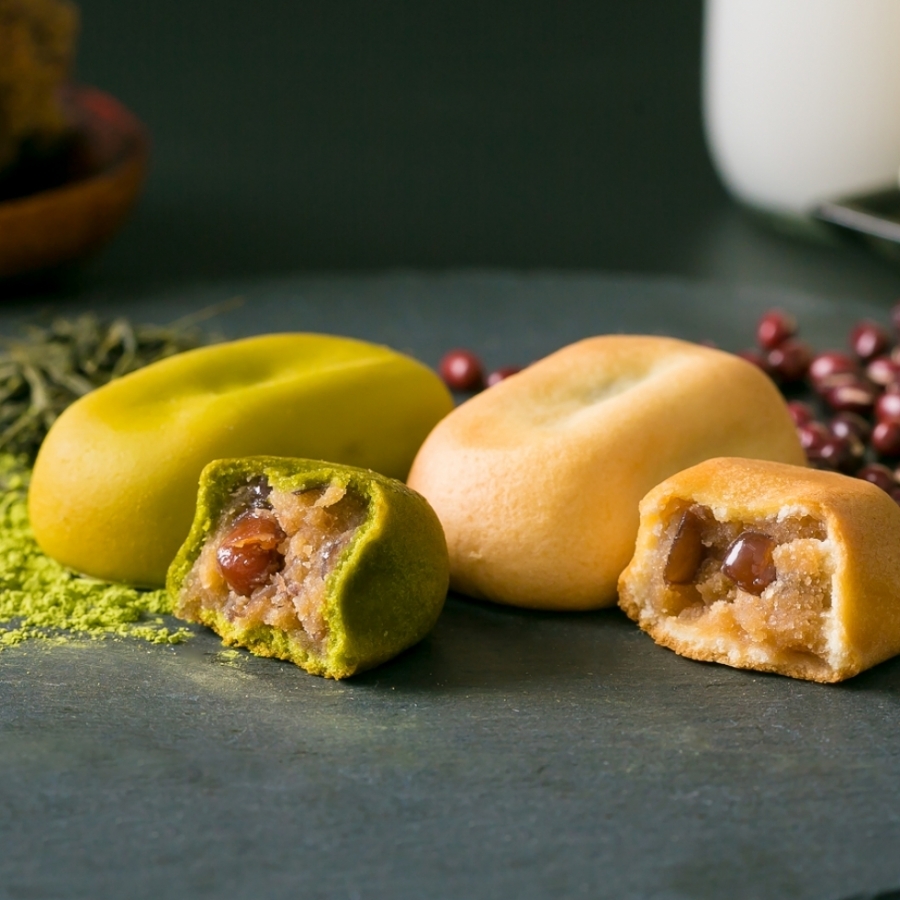 - あんの羊羹(鳴門金時いも)ハーフサイズ×1 おんまい最中×5 讃岐おんまい(ミルク・抹茶)×各2 たべてんまい×1 ときのまめ(金時・ピーナッツ)×各1