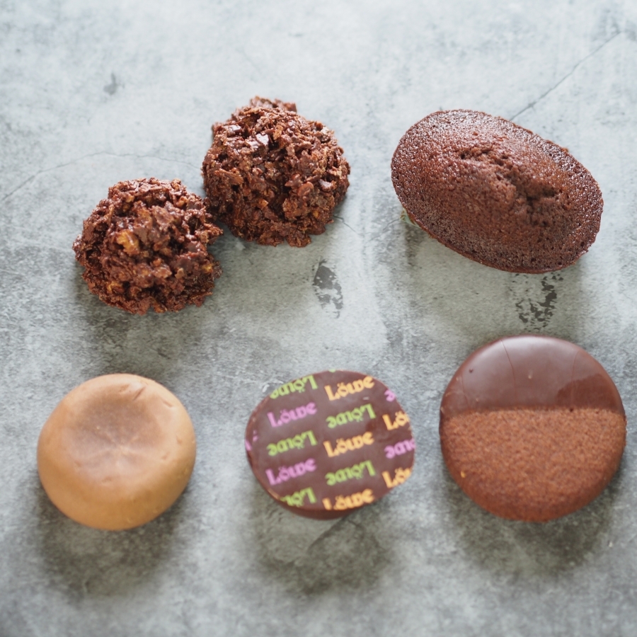 - フィナンシェショコラ、ベイクドショコラクッキー、チョコぼっくり、ヌーボーショコラ、Wショコララングドシャ×各1個