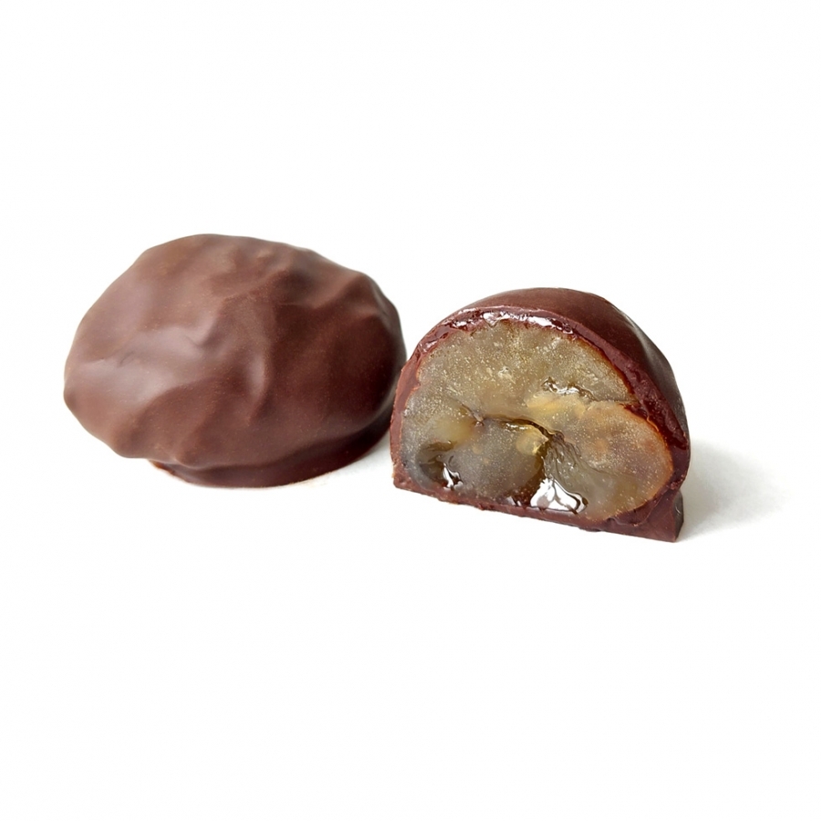 厳選した大粒の栗をしっとりとなめらかな食感のグラッセにし、まるごと一粒を酸味と苦味が特徴のカカオ分66%のビターショコラでコーティングすることでパリッとした歯切れのよい食感に。