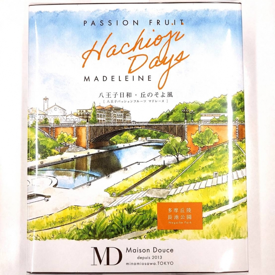 しっとりと、そしてほどけるような食感のライム風味のマドレーヌ生地に程よい酸味の八王子産パッションフルーツのコンフィチュールとパッションのグラス(糖衣掛け)。