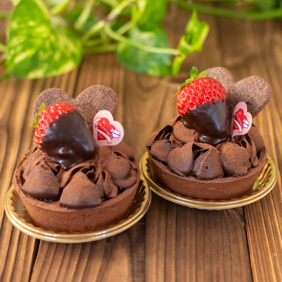 ココアサブレに濃厚な生チョコを流し、上にココアスポンジとチョコガナッシュで仕上げた可愛らしいチョコタルトです。