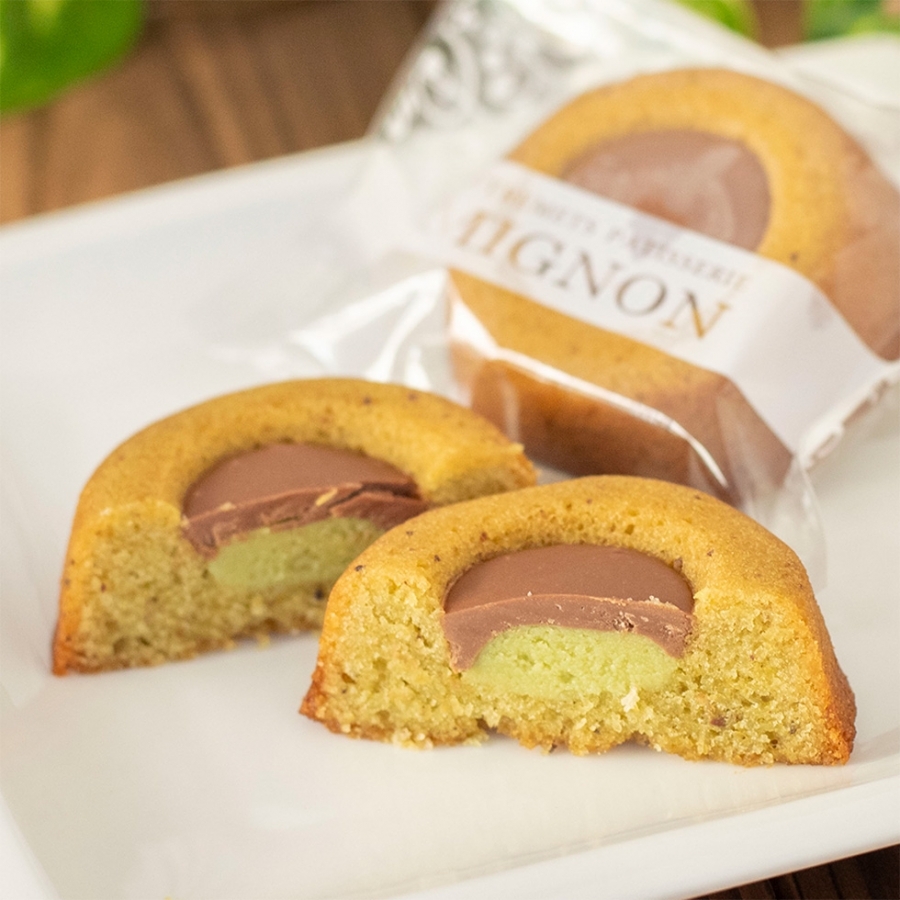 バターとアーモンド&ピスタチオが香るしっとりした生地にピスタチオチョコを絞った お菓子です。