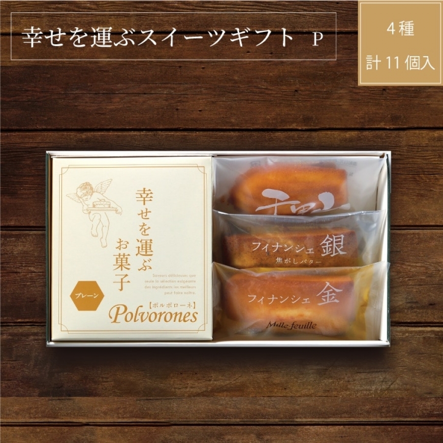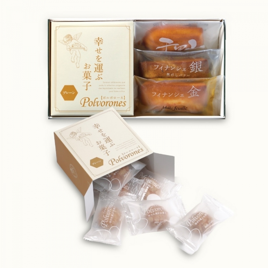| 内容量 | フィナンシェ金 1個 フィナシェ銀 1個 千里山マドレーヌ 1個 ポルポローネ(プレーン)8個入 1箱 |