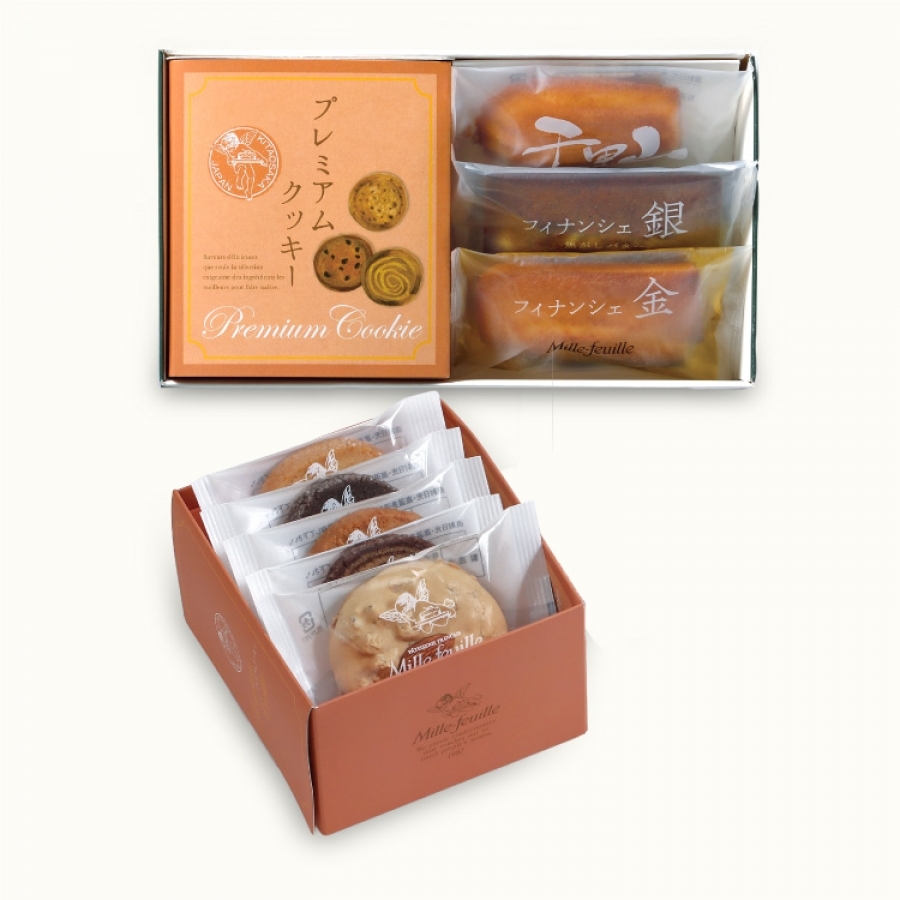 | 内容量 | フィナンシェ金 1個 フィナシェ銀 1個 千里山マドレーヌ 1個 プレミアムクッキー5枚入ーA 1箱 |