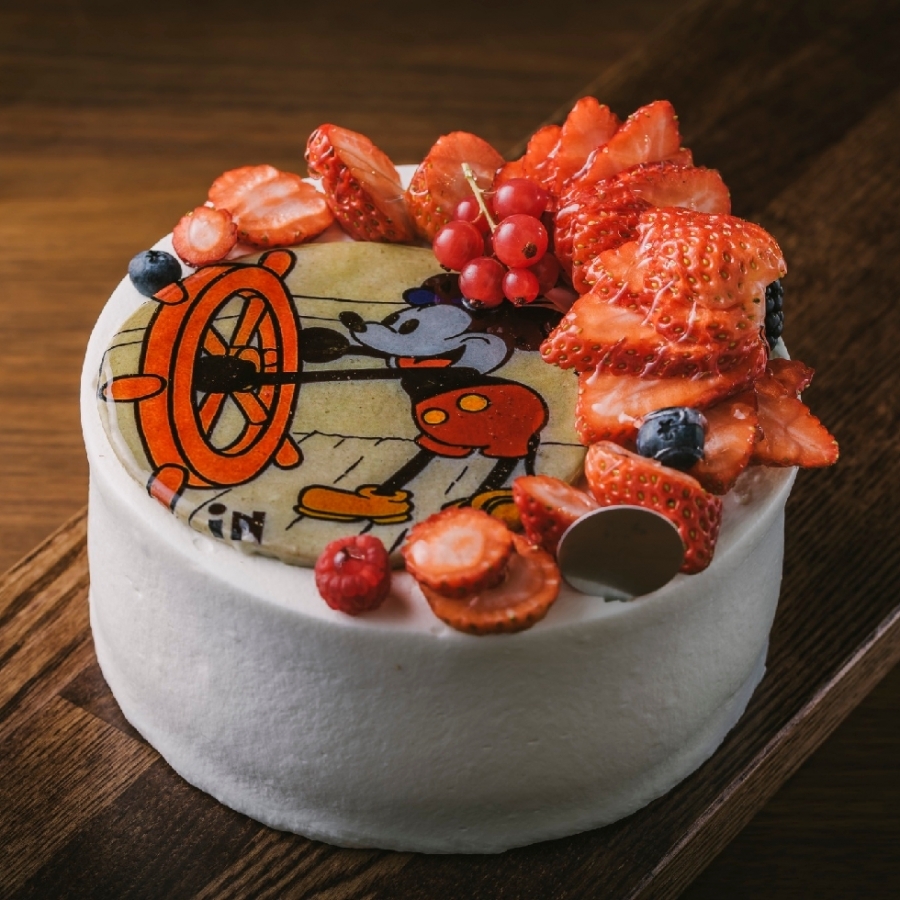 いちご・ジェノワーズ生地・生クリームが絶妙に引き立て合う定番のデコレーションケーキに、お好みのキャラクターや芸能人、お写真をプリントしたプレートをお載せしてご用意いたします。