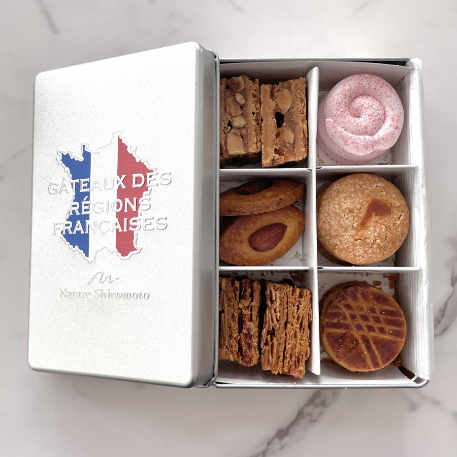 フランスのあちらこちらでつくられている郷土色豊かな焼き菓子を、ナチュール・シロモト流にアレンジしてオリジナル缶に詰めました。