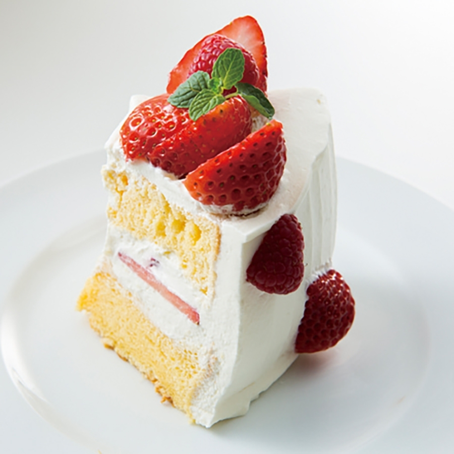 当店自慢のしっとりふわふわシフォンケーキを、特製生クリームとイチゴでデコレーションしました。