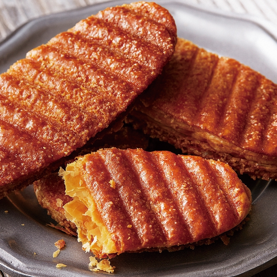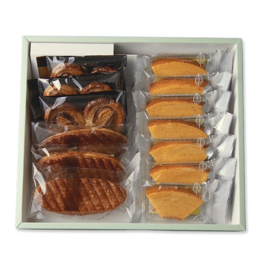 卵とメープルの風味が豊かなカットバウムと、サクサク香ばしいリーフパイ、シナモンが香るパルミエをアソートにしました。