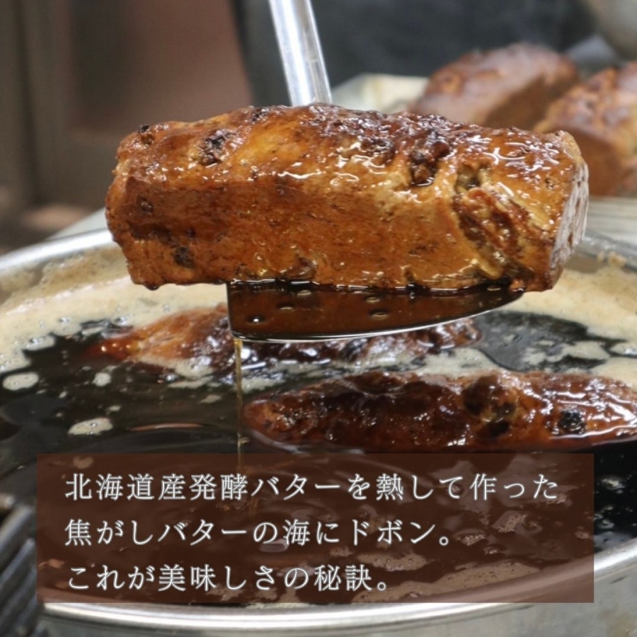 生地が熱いうちに焦がし発酵バターにくぐらせ、