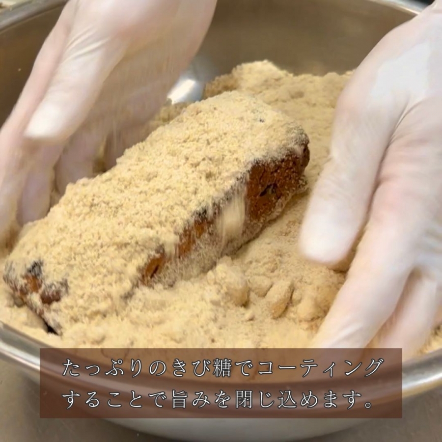 最後にたっぷりの粉糖をまぶし、じっくり熟成させました。