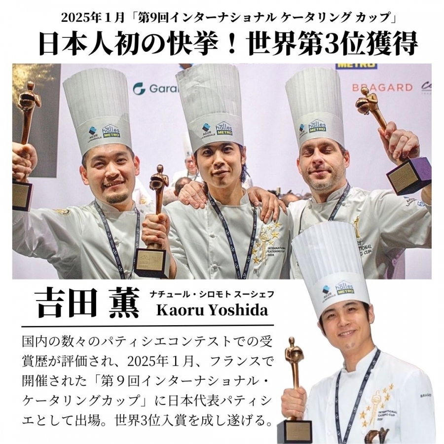 2025年1月、フランス・リヨンで開催された「第9回インターナショナル・ケータリング・カップ」に、日本代表パティシエとして当店の”吉田薫”が出場。