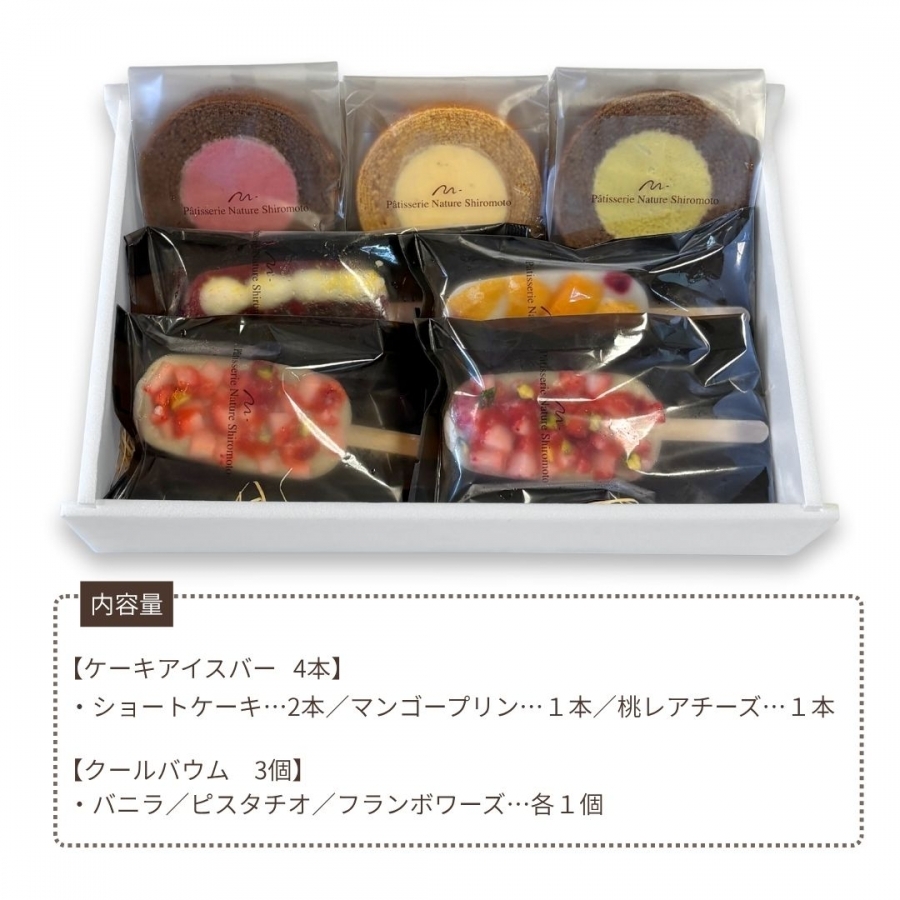 ”まるでケーキのような”アイスバーと、ひんやり冷たいクールバウムをアソートにしました。