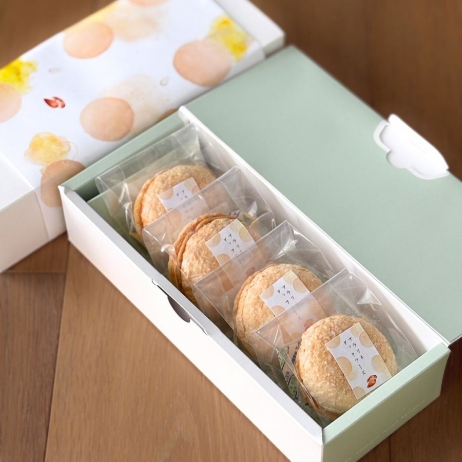 ナッツの香ばしさ、キャラメルの甘み・ほろ苦さが広がる、豊かな味わいのダックワーズギフトです。