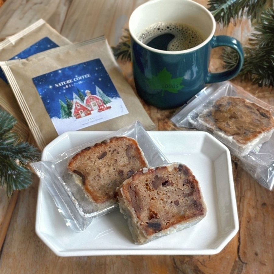 お菓子と相性の良いオリジナルブレンドコーヒーと、香り豊かなカットシュトーレンを3個ずつ詰め合わせました。